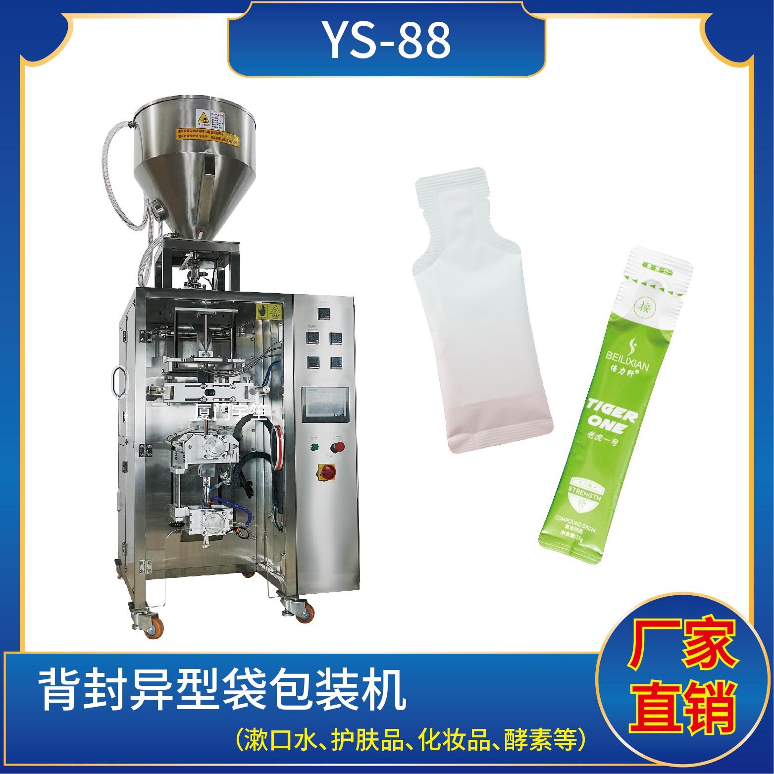 YS-65JL 異型袋包裝機(jī)特 點(diǎn) 1、適用于食品、醫(yī)藥、化工、化妝品行業(yè)中液體、醬料等物品的計(jì)量包裝。2、可自動(dòng)完成制袋、計(jì)量、下料、封合、分切、計(jì)數(shù)、且可根據(jù)客戶要求配置打印批號(hào)等功能。3、觸摸屏操作,PLC 控制,驅(qū)動(dòng)步進(jìn)電機(jī)控制袋長,性能穩(wěn)定、調(diào)整方便、檢測(cè)準(zhǔn)確。智能式溫控儀,PID調(diào)節(jié),保證將溫度的誤差范圍…
