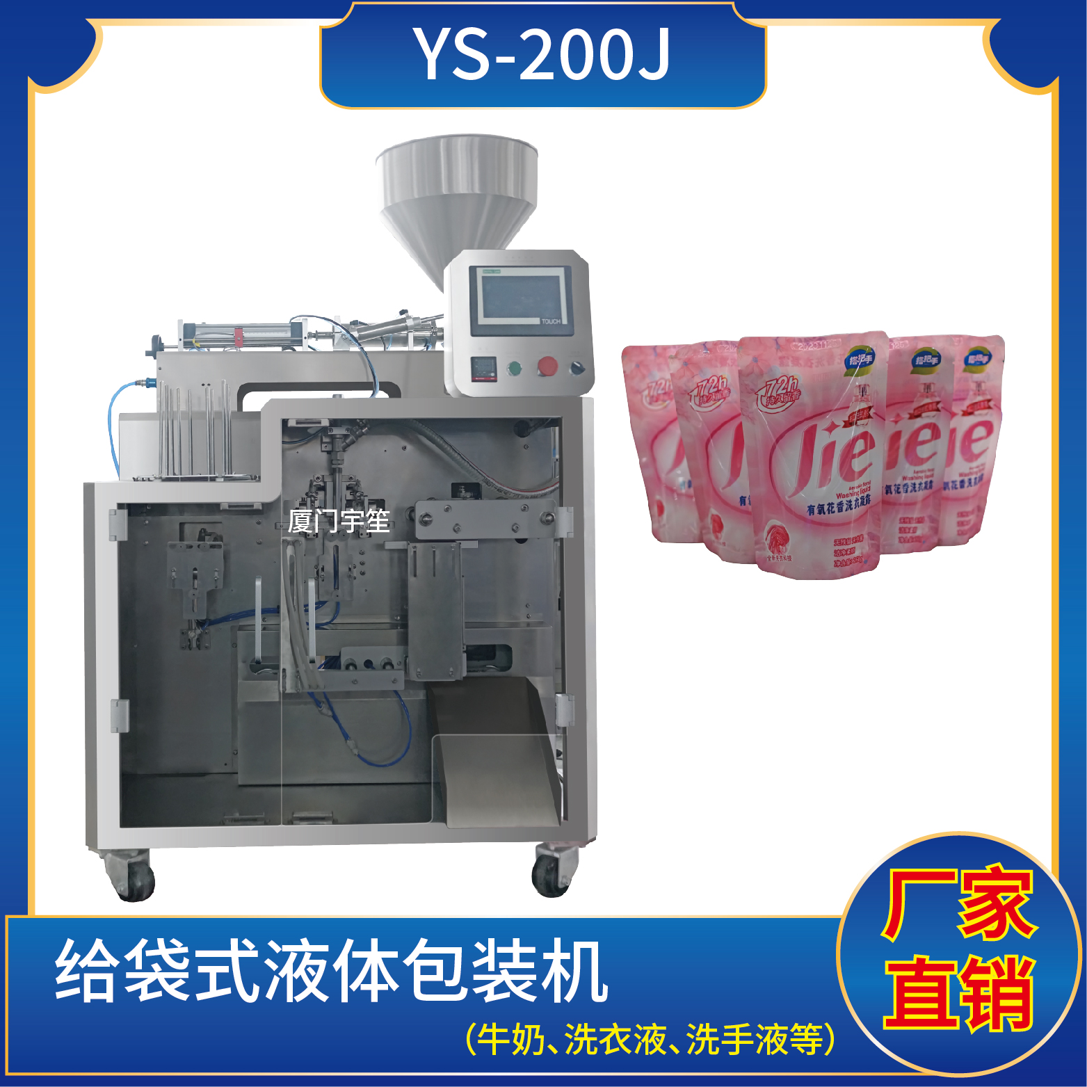 1、適用于食品、醫(yī)藥、化工、化妝品行業(yè)中液體、醬料等物品的計(jì)量包裝,如:洗衣液、消毒液、果汁、酸奶等。