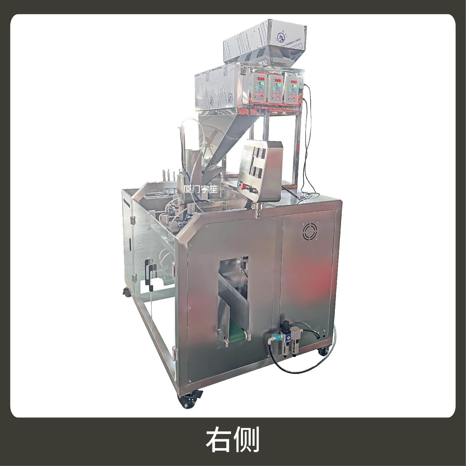 2、包裝流程全自動(dòng),無(wú)需人工操作,可抽真空、充氮?dú)猓M合下料。可根據(jù)充填物料的性質(zhì)選配不同的下料結(jié)構(gòu),且可根據(jù)客戶要求配置打印批號(hào)等功能。